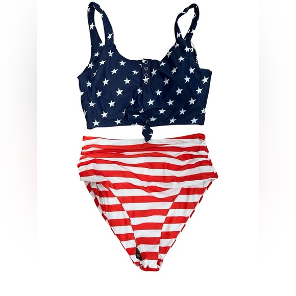 Patriotic High-Waisted Bikini Stars and Stripes 2-Piece Swimsuit Womens Medium