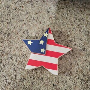 Patriotic Home Decor set - eagle wooden beads (approx 27 in from tip of tag to end of tassel), wooden star (approx 4 in), and USA sign. Everything is in excellent, like new condition.