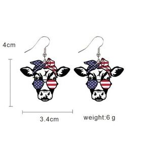 Fun cow earrings with American flag design. Perfect for a unique style statement.