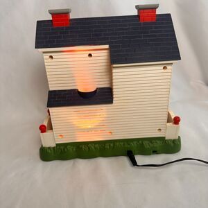 Show your patriotic spirit with this charming lighted house decoration! This two-story Americana home features a bright red door, detailed shutters, and festive red, white, and blue bunting throughout. When plugged in, it lights up warmly from the inside, creating a cozy and nostalgic glow—perfect for your 4th of July, Memorial Day, or year-round patriotic décor.