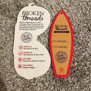 Swim trunks have mesh lining and drawstring and elastic waist with pockets.