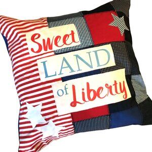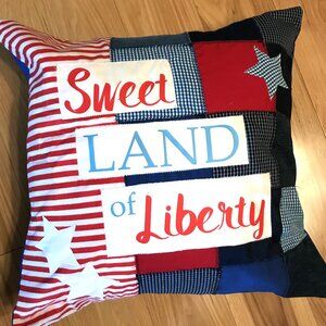 Patriotic Pillow Cover: Patchwork Stars, Sweet Land of Liberty, 18 x 18