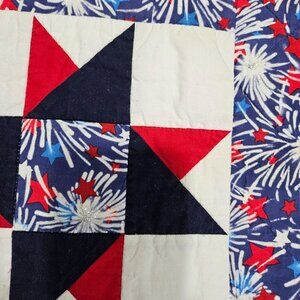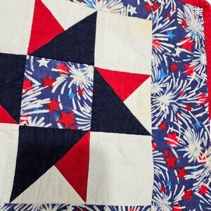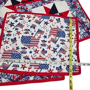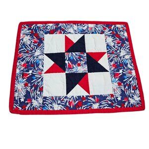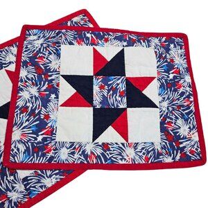 Patriotic Quilted Placemats Set Of 4 Fireworks & Stars Double-Sided Design Red/W