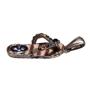 This charming pendant is shaped like a flip flop with a patriotic theme. It features red, white, and blue colors adorned with rhinestone accents, offering a playful yet elegant touch to your jewelry collection. Ideal for those who appreciate unique accessories. • Flip flop-shaped pendant • Rhinestone accents • Red, white, and blue colors • Approx. 1 inch in length • Lightweight design No noticeable flaws. Size: Womens OS Condition: Pre-Owned Good Good condition, gently worn. Jewelry has been cleaned. Thank you for shopping The Hippo Hut! All items are stored in a smoke free and pet free environment. Fast shipping. We consider all reasonable offers. Bundle items and save! The more you bundle, the bigger the discount.