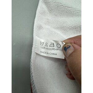 Red towel with white stars and blue text shows minimal wear. Towel measures approximately 26 inches long and 17 inches wide.