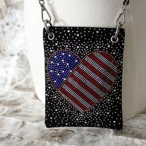 Patriotic Red White Blue Rhinestone Bling Black Hobo Crossbody Mini Phone Bag