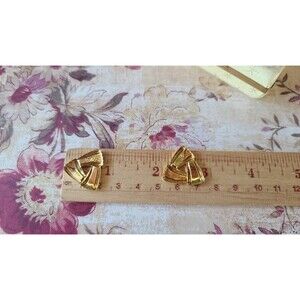 These are a pair of vintage patriotic red, white and blue triangular enamel pierced earrings.