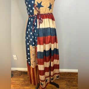 🇺🇸 Patriotic Rustic Americana Flag Maxi Dress – Size Medium 🇺🇸