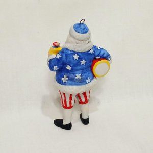 Patriotic Santa Christmas Ornament 1863 Style 3" Tom Tierney Ceramic Drum Doll
