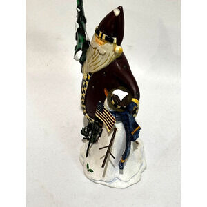 Patriotic Santa Claus & snowman Figurine with flags Resin Folk Art Country cute