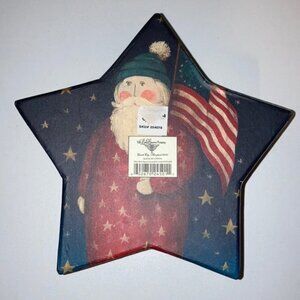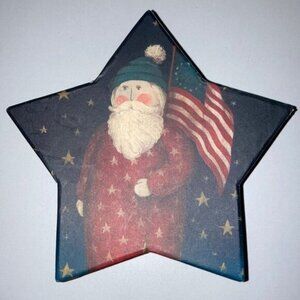 Add a festive and patriotic touch to your holiday décor with this star-shaped decorative Santa box! Featuring a charming design of Santa Claus holding an American flag, this piece is perfect for holiday gifting, seasonal storage, or festive display. 🎁✨