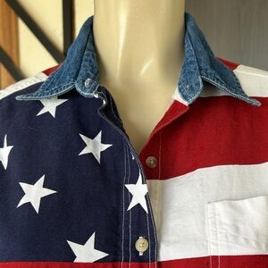 🇺🇸 Patriotic Sleeveless Button Down Shirt with Denim Collar size M 100% cotton