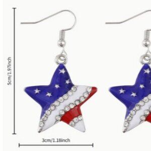 Patriotic Star Earrings American Flag Design Silver-Plated With Rhinestones