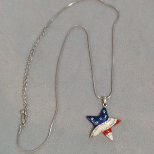 It's the 4th of July, wear your star spangled star necklace proudly! 18 inch chain. Rhinestones with the red, white and blue! Costume jewelry.