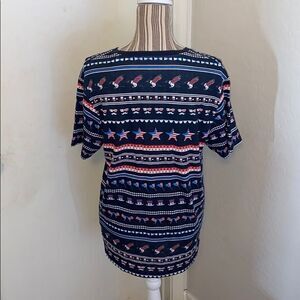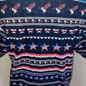Patriotic all over stars graphic print shirt, brand new with tags, size large, please note: although it’s brand new with tags the shirt has pinhole as seen in photo.