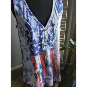 Indigo Patriotic Tank just in time for 4th of July. Size Large. Has some sparkle on the front. Pet free/smoke free home.