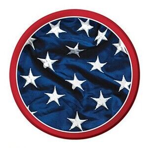 Celebrate the spirit of patriotism with these 7" paper party plates featuring a vibrant USA flag design in red, white, and blue. These disposable plates are perfect for election celebrations and other patriotic occasions. This sale will include 68 plates by Party Creations, a trusted brand for party supplies. 56 in one design that remains in original packaging and 12 of the other whose packaging is considered to be open box.