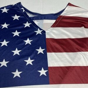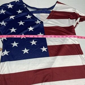 Show your patriotic spirit with this stylish women's top featuring a bold red, white, and blue design. Perfect for casual outings or festive occasions.