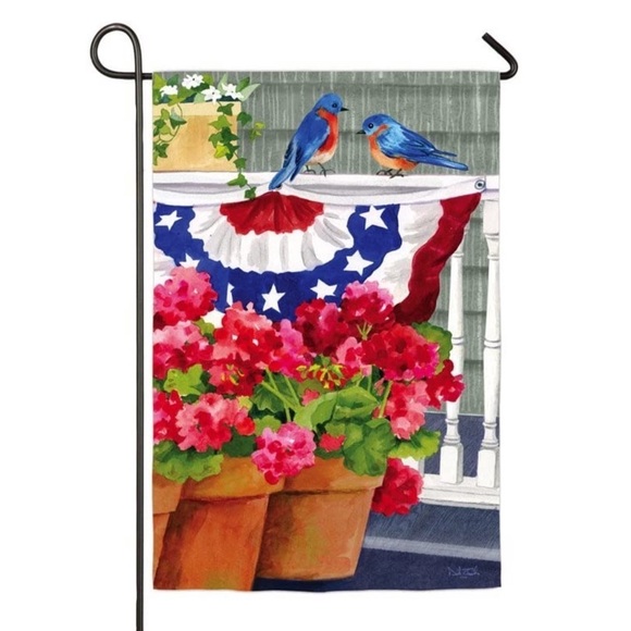 Patriotic Yard Garden Flag Bluebirds Geraniums American Flag Floral Backyard