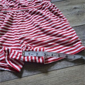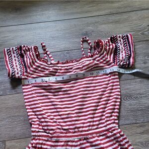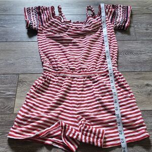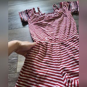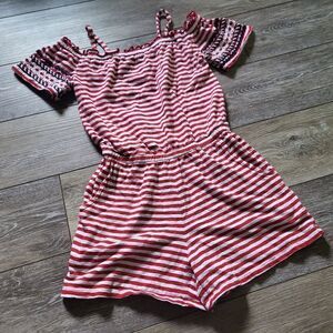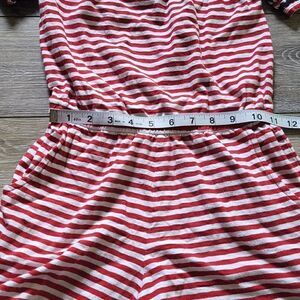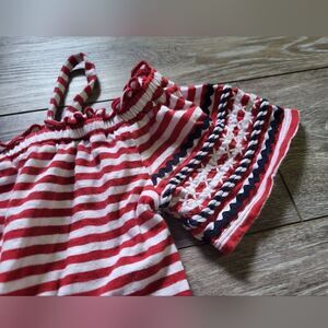 Patriotic girls romper. red & white stripes with navyblue details on the sleeves