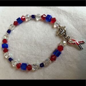 RED, WHITE & BLUE CRYSTAL BRACELET w/CHARM