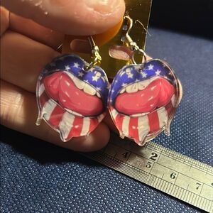 Fun earrings featuring a lips design with stars and stripes. Perfect for adding a pop of color.