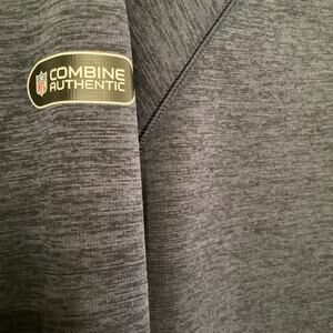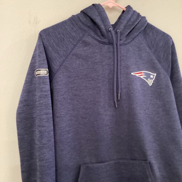Patriot’s Under Armour Navy Blue Sweatshirt in Size Small/P with logo on Left Chest and the Right Arm has “Combine Authentic”