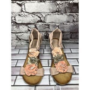 Selling Patrizia Blush Pink Flower Faux Leather Harlequin Wedge Sandals Women’s Sz 38EU