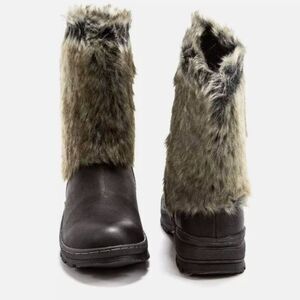 Patrizia Danzee Faux Fur Winter Boots Black Leather Size 40 9.5 Zip Up #winterboots #designerboots