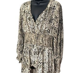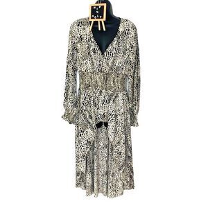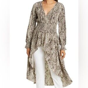 Patrizia Luca Deep V High-low Animal Print Tunic Cream Black Size Small