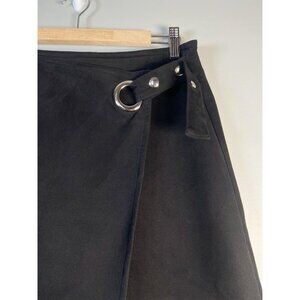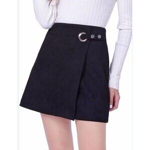 Patrizia Luca Milano Black Faux Suede Wrap Mini A Line Skirt Size M Minamalist