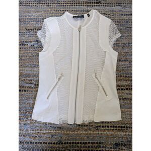Patrizia Luca Milano Full Zip Mesh White Short Sleeve Jacket Top Small Pockets