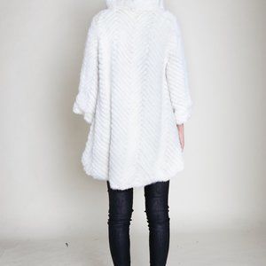 Perfect white fur coat, with a hood!! Will dress up any look and keep it very chic! Worn for photoshoot purposes only.