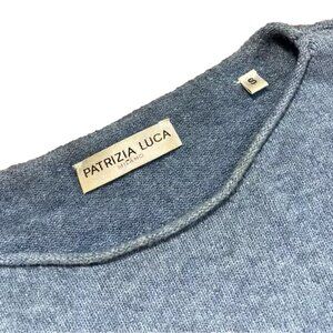 Patrizia Luca Polka Dot Sweater Sz Small Blue Gray Stretch Knit Top w/ Applique
