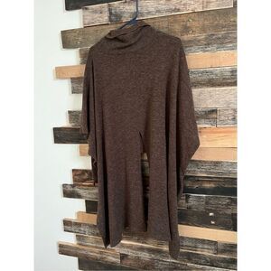 Patrizia Luca Women’s Poncho Sweater cover Button side brown high low
