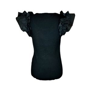 Patrizia Luca Women's Ruffle Sleeve Top Size M Black Dressy T-Shirt NWT