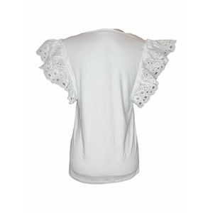 Patrizia Luca Womens Ruffle Sleeve White T-shirt Size S Tee Round Neck Eyelet