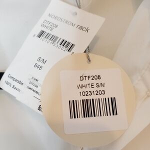 NWT Asymmetrical white blouse with makeup markings along collar and one spot on back. Still has tags, not washed yet, but easily removable will wash.