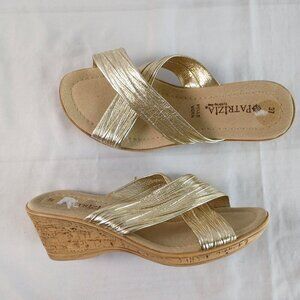 Patrizia Marge Gold Slide Sandals Wedge Heels Size 37 EU Comfy Cute
