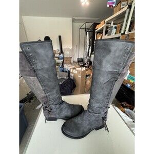 Patrizia Maxie knee high Tall Riding boots shoe size 10 M gray faux leather. Condition is Pre-owned. Shipped with USPS Ground Advantage.