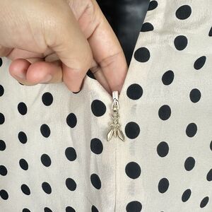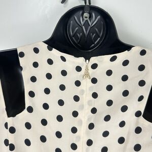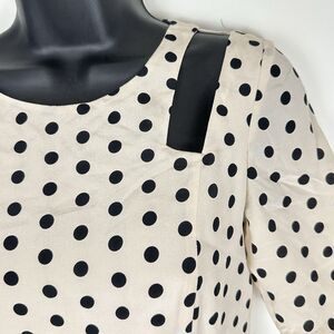 Patrizia Pepe 100%Silk Polka Dot Black Cream Dress Size 38 Cold Shoulder Lined Size 38 bust 16" pit to pit laid flat waist 14.5" Length 32" Shoulder to hem Lightweight Lined fit & flare Excellent condition