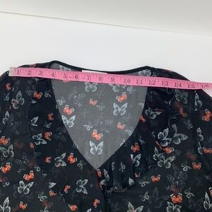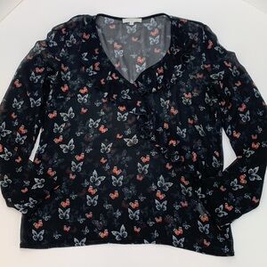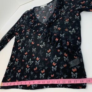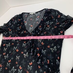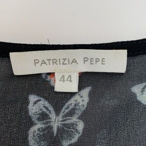 Patrizia Pepe Black Sheer Butterfly Print Ruffle Trim Top Size 44 (small…