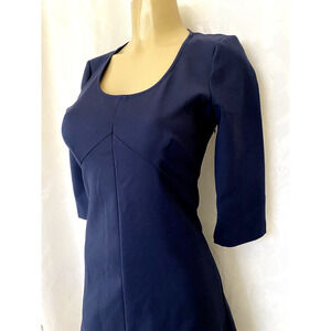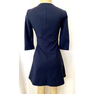 Patrizia Pepe Dress A Line 3/4 Sleeve Navy Blue Mini Stretch Cotton Roun…
