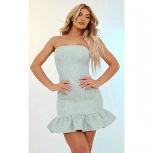 Patrizia Pepe Jacquard Bandeau Puffball Drop Waist Metallic Mermaid Dress Sz44/8