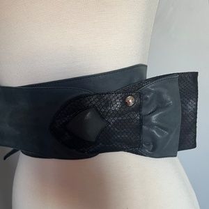 Patrizia Pepe Soft Shiny Leather Gray high-waist belt Bow Python Stud Detail