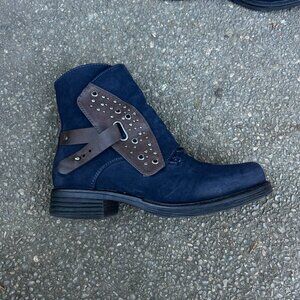 Patrizia Spring Step Billijoe Navy Leather Studded Cross Strap Boots Size 38