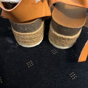 Nice pair of tan platform sandals from Patrizia by Spring Step - I also have a black pair listed. I have a ton of shoes that just don’t work for me anymore. I buy quite a few in hopes that they will fit me and my lifestyle - many have just a been tried on or worn a bit inside. Others don’t fit after my foot surgery :( Check out my closet for more items - bundle and save! (I will not respond to scammers who “can’t see all the photos” and ask to send to their phones!)