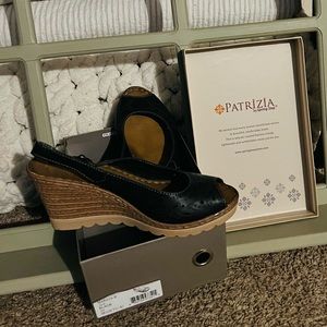 Patrizia by Spring Step Maraya-B wedge sandal is trendy and casual. They feature faux leather upper with cutout designs,ankle strap with a buckle closure and 3 in. wedge heel. Extremely Light weight. Worn once for a holiday party. Very comfortable. Review pictures. If you have any questions please ask. 🤗