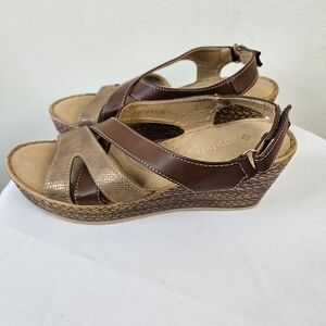Patrizia by Spring Step Brown Faux Leather Wedge Sandals | Mid Heel Size 10