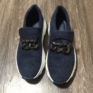 Patrizia by Spring Step Navy Blue Suede Chain Loafer Sneakers Women EU 37 US 6.5